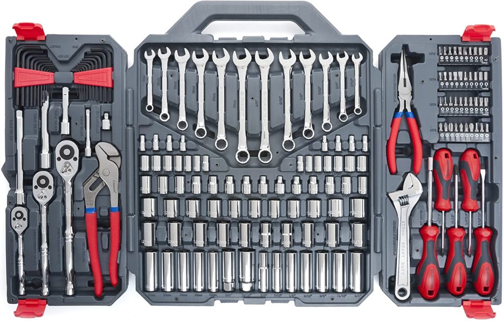 So, among these 170 pieces of tools, you can find many wrenches, hex keys, sockets, and ratchets, but also pliers, a set of high-quality bits, a few screwdrivers, etc. All in all, this set brings a slightly more diverse choice of tools than the previously mentioned one by DeWalt.We must emphasize that Crescent has a tradition of more than one century and that all the tools you can find in a sturdy case have ANSI and ASME specifications. Also, there are pretty similar Crescent kits with more or fewer pieces, so you can choose in that regard, with of course a change in price.