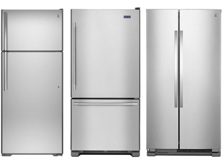 There are 3 main types of refrigerator configurations: top-mounted freezers, bottom-mounted freezers, and side-mounted freezers.