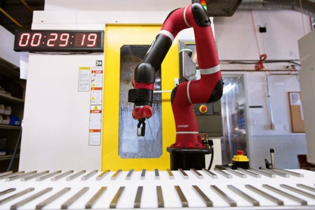 Robotic automation for a machine is the process of loading and unloading raw material into machinery for manufacturing processing. Robotics also take the role of overseeing the machine as it carries out these tasks. These benefits the company as it saves on the cost of hiring human workers.